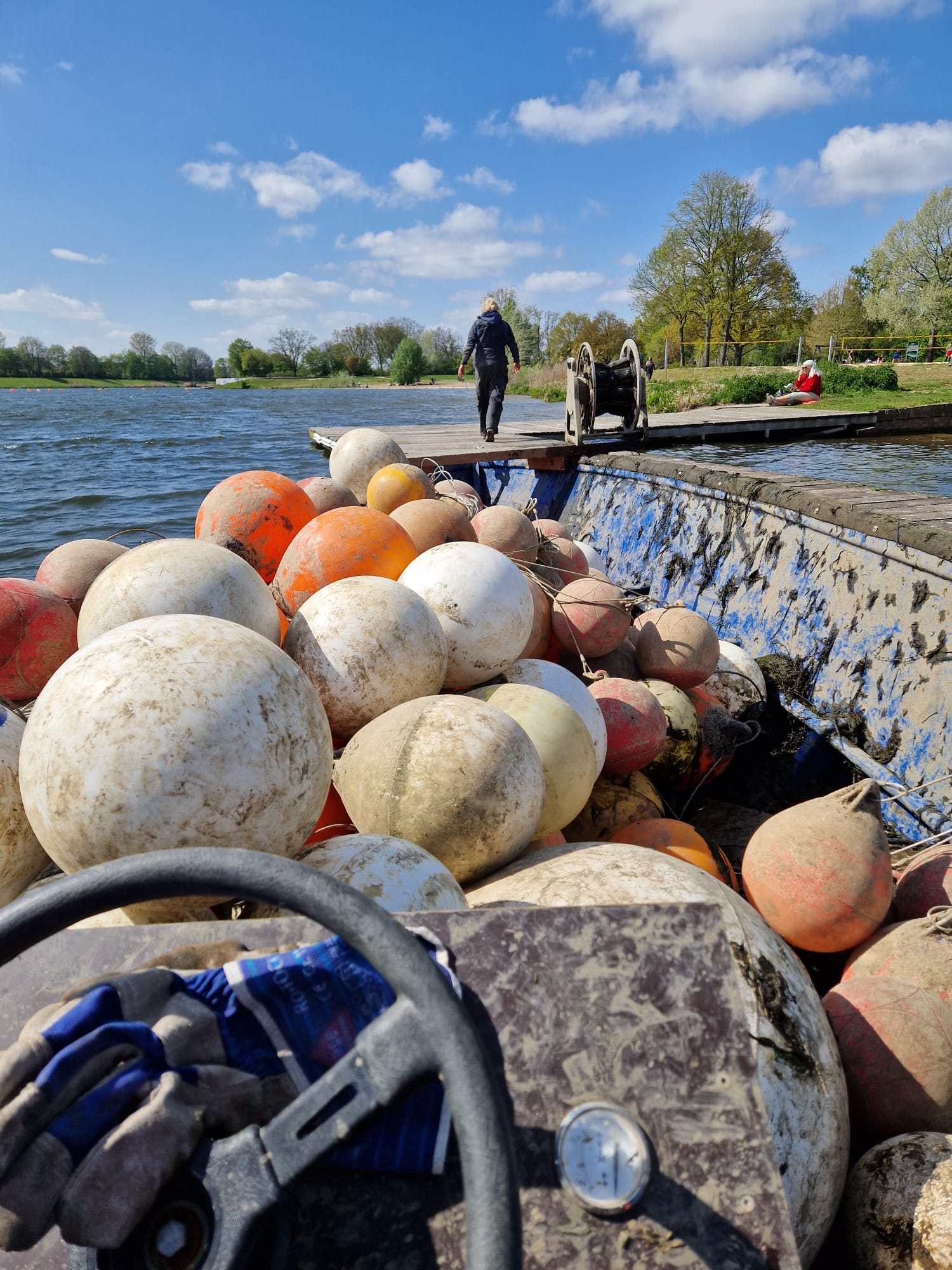 Am 25. April stand die Vorbereitung unserer Regattastrecke im Fokus. Während 6 Helfer:innen die Einzelteile der Startbrücke kontrolliert und repariert haben, waren parallel 11 Aktive in zwei Schichten damit beschäftigt, die Bojen auf der Strecke zu setzen.